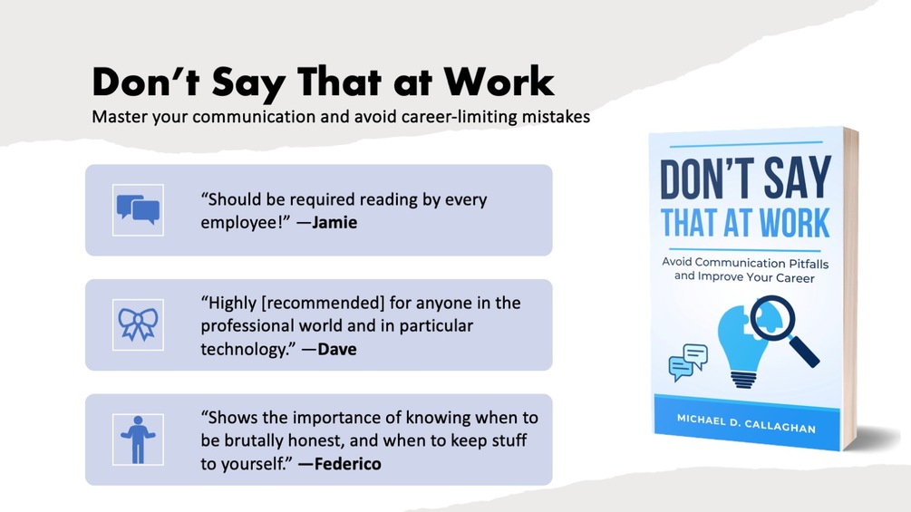 Don't let your communication skills be the chink in your professional armor. Order Don't Say That at Work today, and learn to choose your words wisely, leaving a lasting positive impression in every interaction.